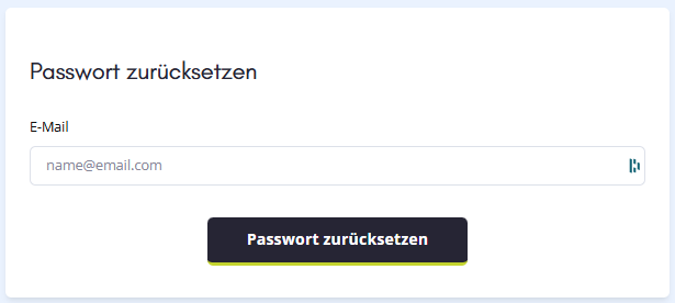 Trage nun deine E-Mail-Adresse ein. Du erhältst daraufhin eine E-Mail mit einem Link, um ein neues Passwort zu vergeben.