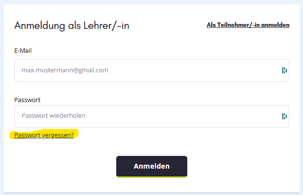 Falls du dein Passwort vergessen hast, dann klicke auf der Anmeldeseite auf "Passwort vergessen?"