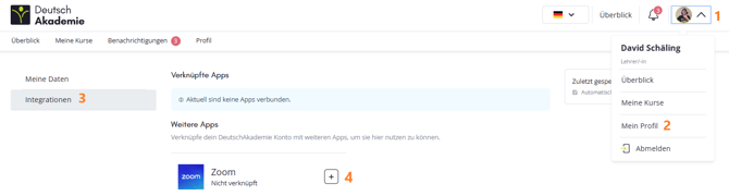 ⚠️ Wichtig: Es ist zwingend erforderlich, dass du dein Zoom-Konto vor Kursstart mit deinem Konto verknüpfst. Ohne Verknüpfung wird keine Meeting-Serie erstellt!
