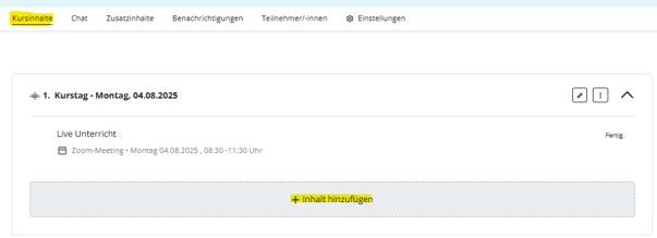 - Unterrichtsmaterialien teilen im Bereich Kursinhalte